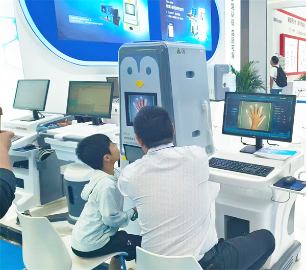 在展會現(xiàn)場,X射線骨齡儀成為了眾人矚目的焦點,尤其受到了青少年的熱烈歡迎。許多懷揣著對未來身高好奇與期待的青少年紛紛來到骨齡儀前,排隊等待進(jìn)行骨齡檢測。通過檢測,能夠準(zhǔn)確評估青少年的骨骼發(fā)育狀況,為他們提供關(guān)于生長發(fā)育的寶貴信息,幫助他們更好地規(guī)劃未來。